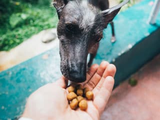 Instead of feeding your dog in a bowl – scatter the food on the floor to encourage your dog to for-age. To start with do this on a hard floor which is easy to clean but as your dog becomes confident then you can make it harder. Try scattering in the garden, in grass or hide around the home. Your dog will use its natural sense of smell to forage. When hiding around the home, do so in piles, in areas that you are happy for your dog to forage in and where there are no dangers. To begin with you may need to guide your dog to provide some help.