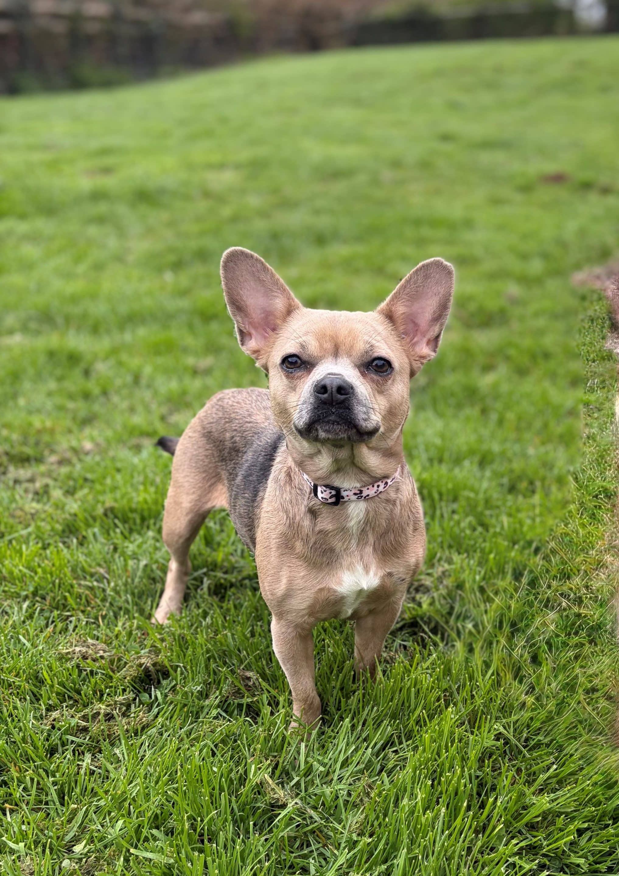 Bonnie is a 3-year-old Frenchie x Chihuahua. She is good with other dogs, cats and children of all ages.