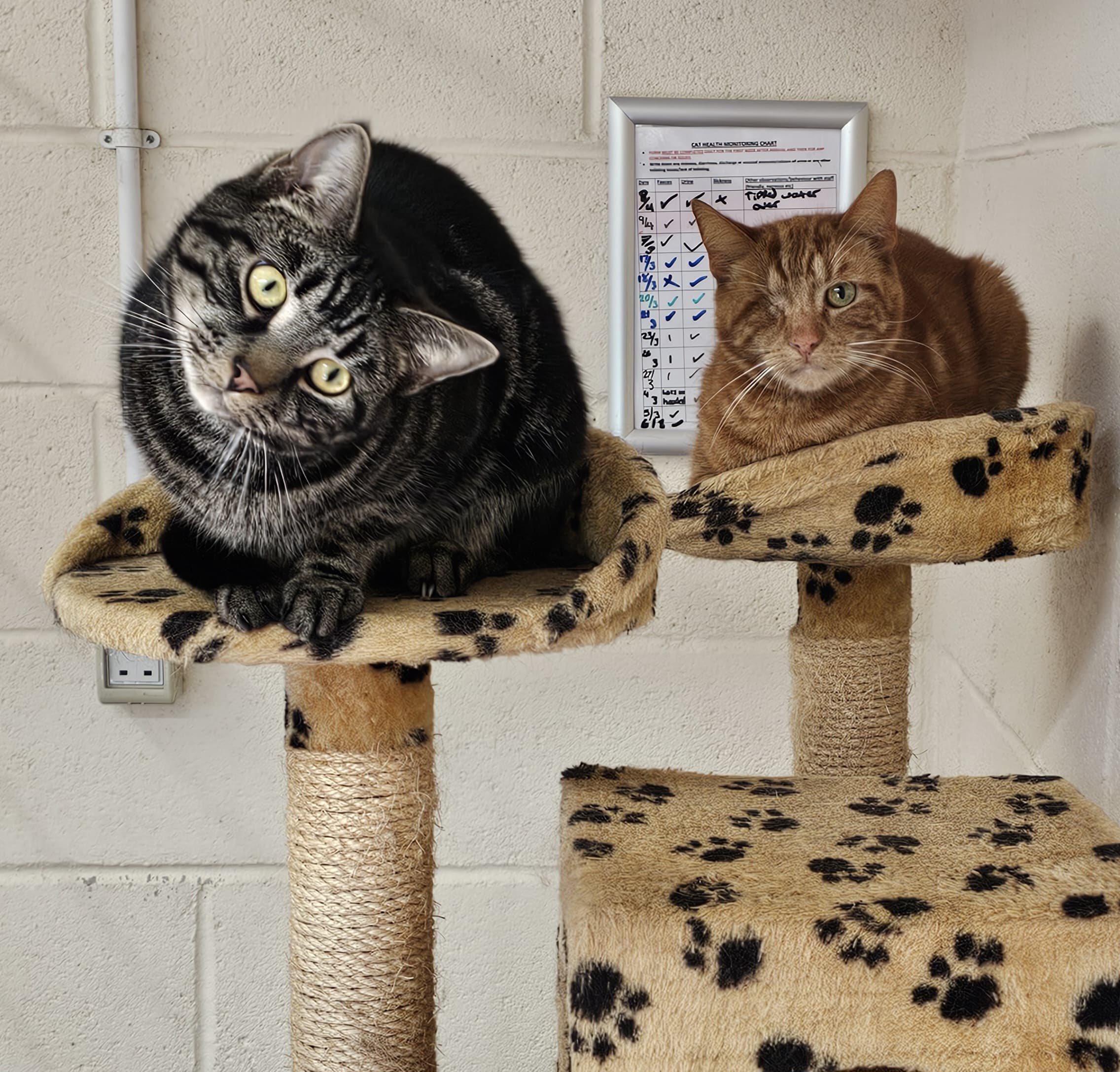 Chester (the ginger) can be a little shy to begin with but warms up to people once he gets to know you, he had to sadly have an eye removed when he was younger due to an medical issue, he copes very well with this. He was noted as quite friendly in the previous home, so is likely quite shy to begin with due to stress being in the cattery environment.