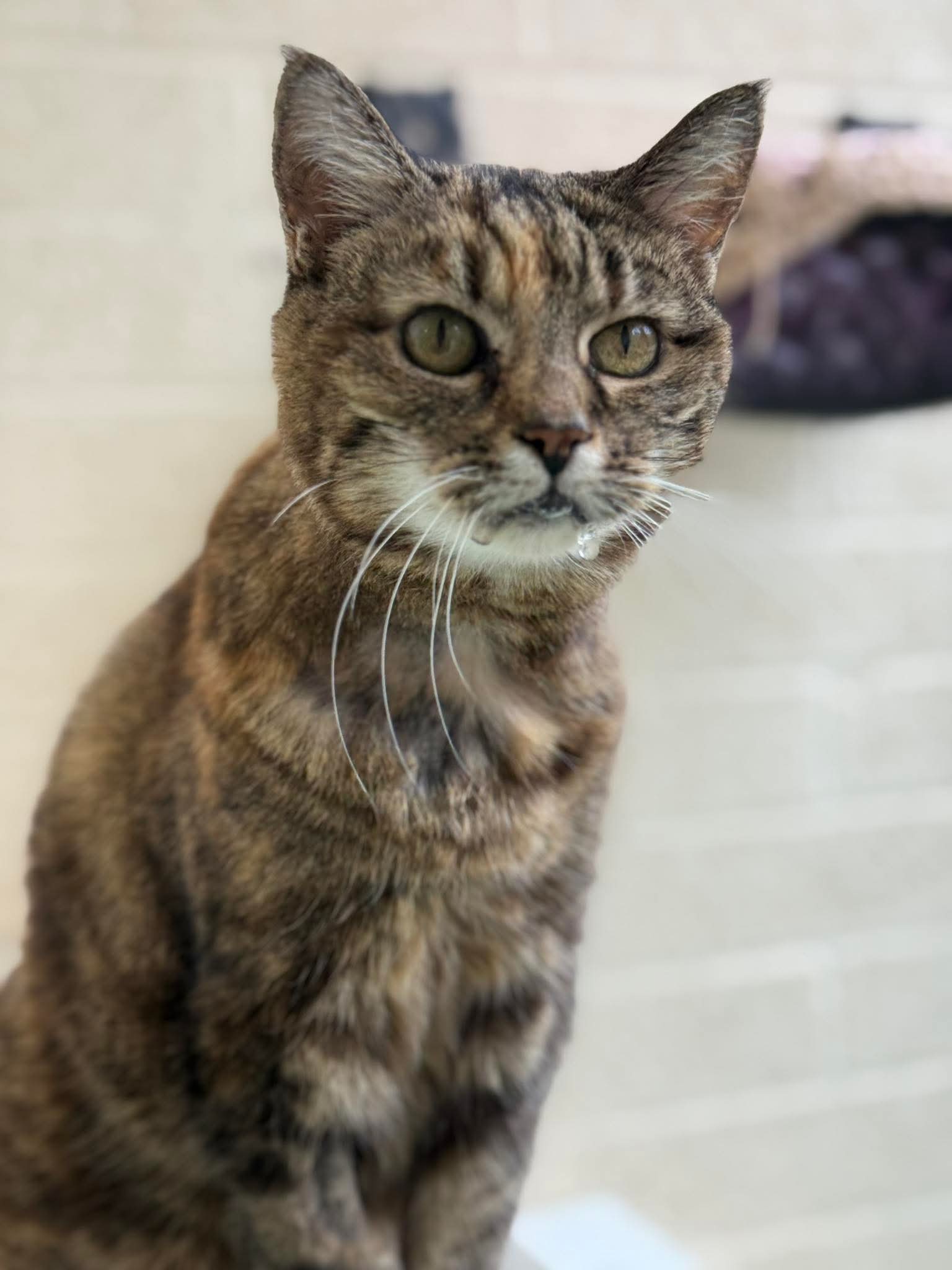 Jess is a super sweet and cuddly 13 year old female tabby/torti.
