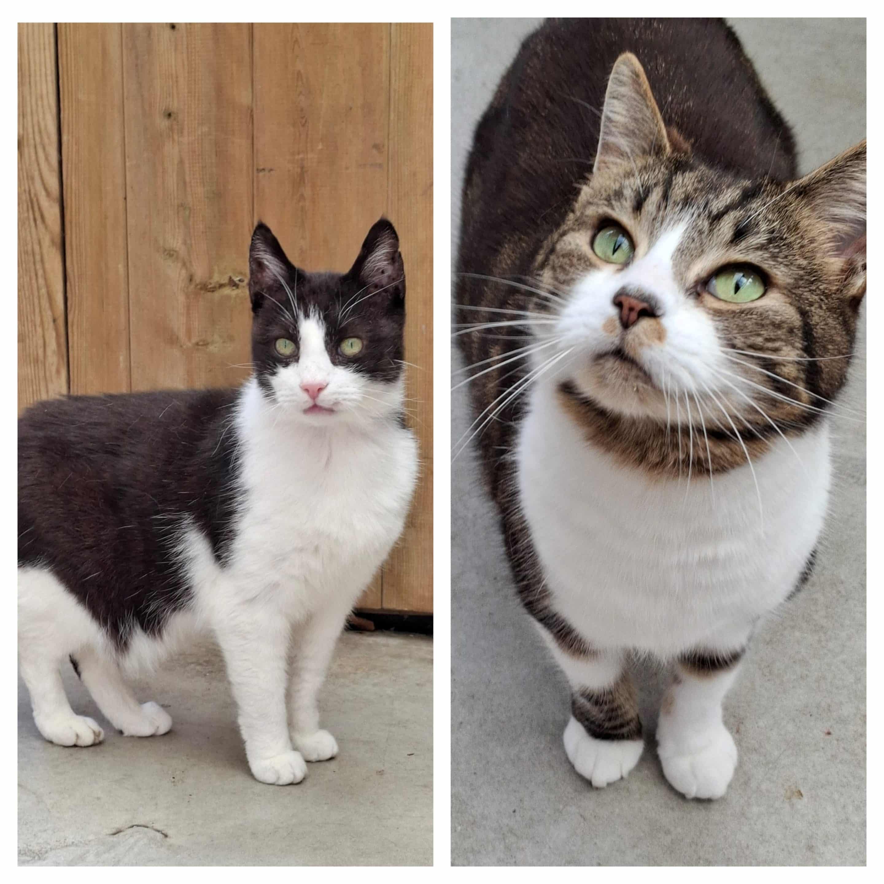 Mokka is a 9 year old tabby and white female and Smudge is a 12 year old black and white male.