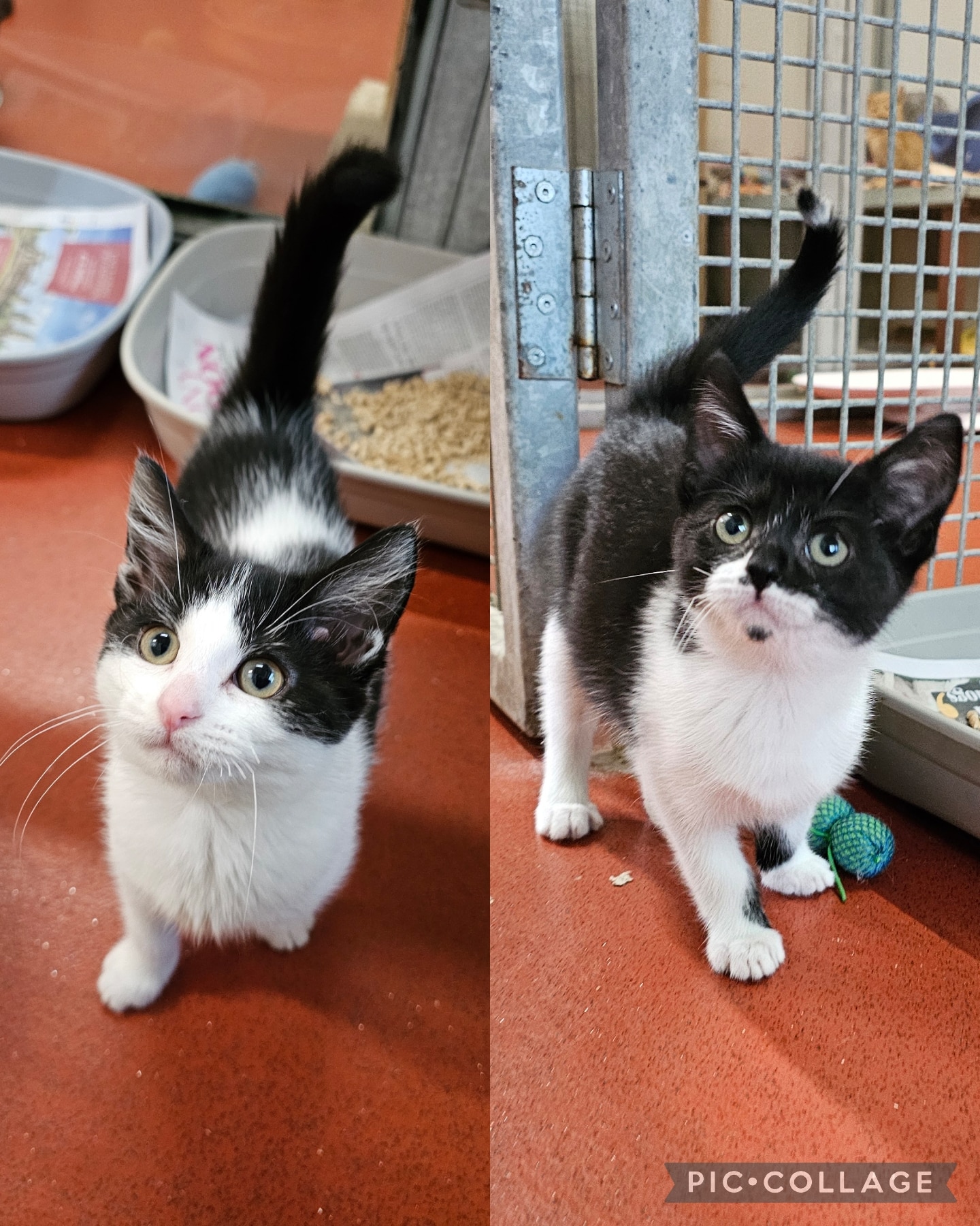 Molly & Ada are a sweet pair of 12 week old females who would like to be homed together, they love to play and Ada loves to follow staff around rubbing on their feet.