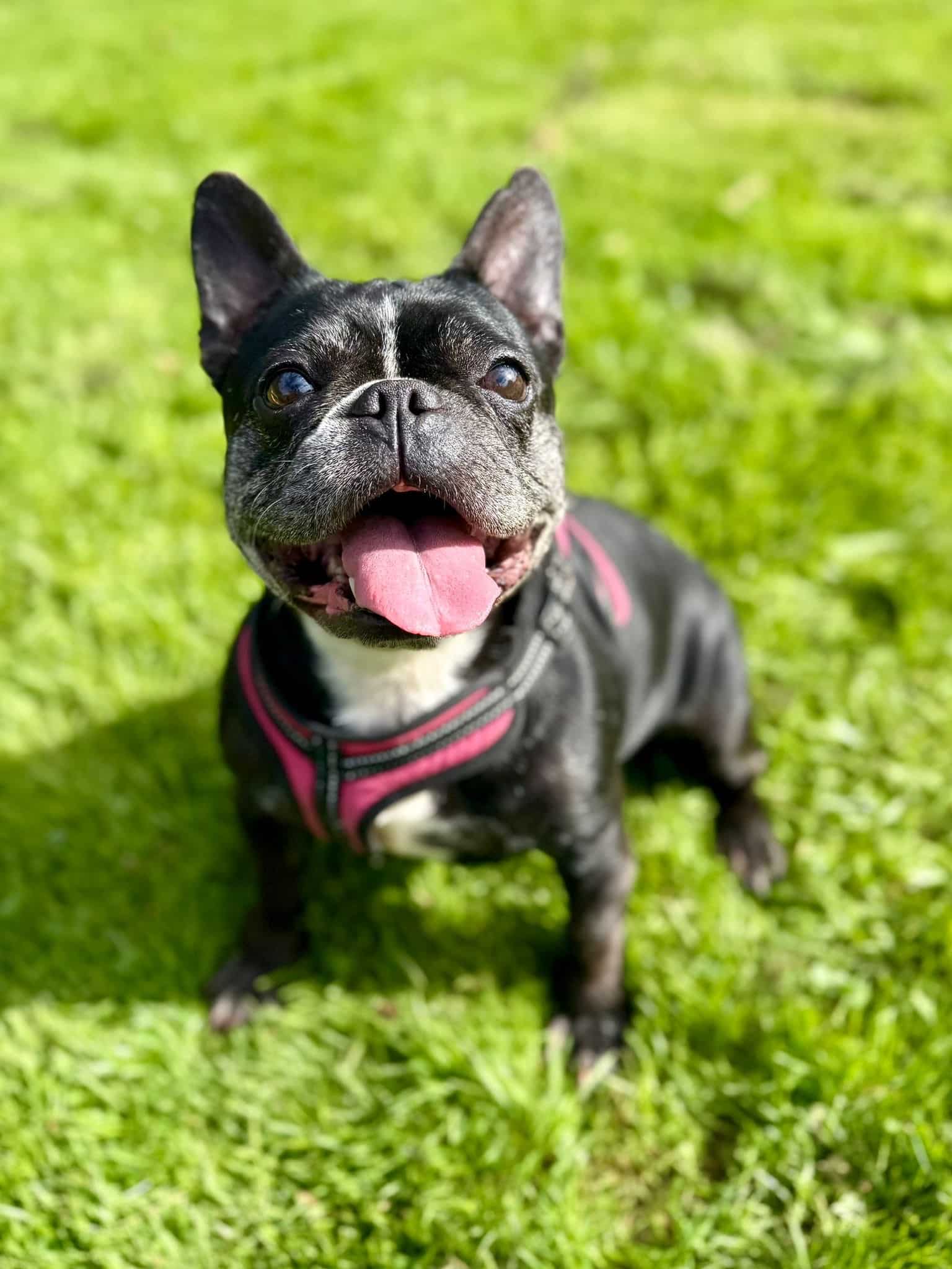 Nins is a 6yr old Frenchie who came to us through no fault of her own. She is good with dogs and can live with children. She does need a home where someone is around a lot of the time as she isn’t keen on being left. She has been known to chase cats, so living with them may not be suitable.