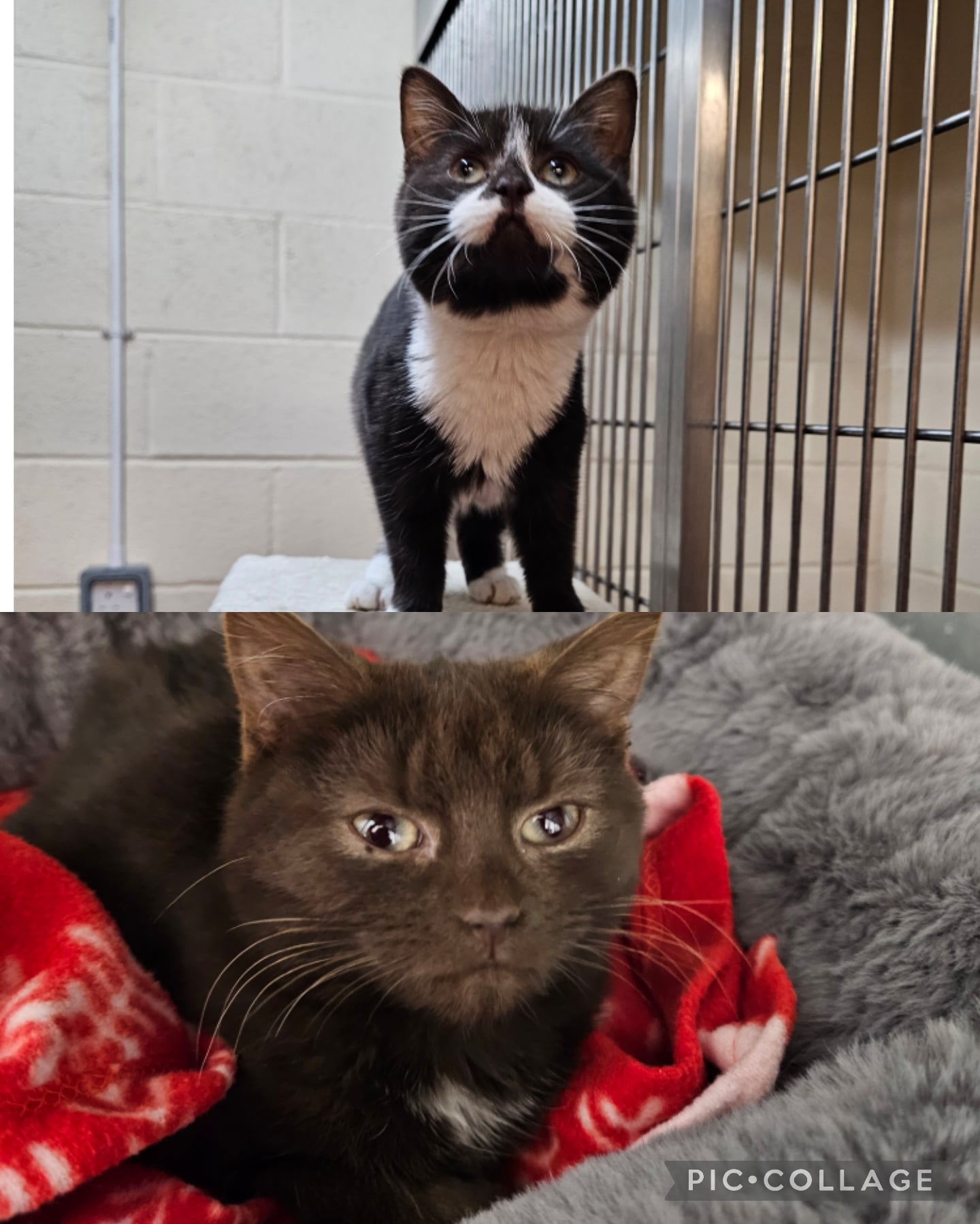 They are around 4 months old and friendly, although Pepsi can be a little shy of new people. They would be fine to live with children over 5 years, cats and dogs.