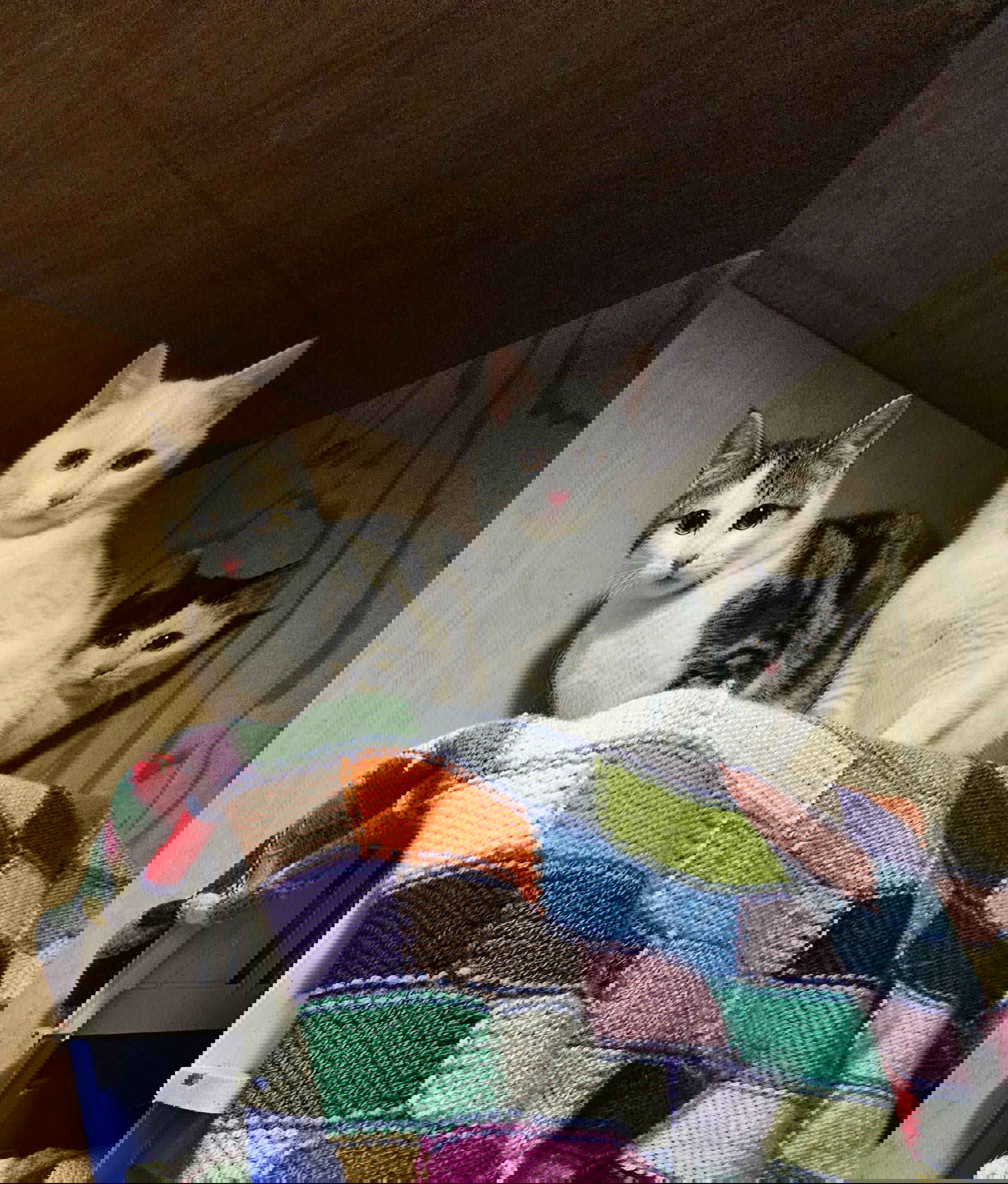 William- tabbywhite, River- white/black and Everest black/white are all 4 month old semi-feral kittens looking for a barn/stable type home where they will have a human to feed them and a safe place to sleep.